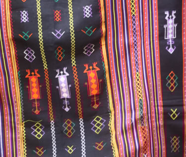 Ikat fabrics can be distinguished from songket fabrics based on the type of thread. Songket usually wears gold or silver thread. The songket motif is only visible on one side of the cloth, while the ikat motif is visible on both sides of the cloth.